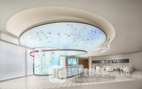 步入大廳,首先映入眼簾的是造型別致的接待臺(tái)。它以流暢的曲線勾勒出優(yōu)雅的輪廓,宛如一朵輕盈綻放的花瓣。上方的圓形穹頂更是吸睛焦點(diǎn),透明材質(zhì)之上點(diǎn)綴著晶瑩的水滴圖案,似清晨花瓣上的露珠,靈動(dòng)而清新。柔和的光線透過(guò)穹頂傾灑而下,營(yíng)造出自然且溫馨的氛圍,瞬間驅(qū)散患者的緊張與不安。